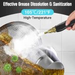 2500W vardinė galia per mažiau nei 10 sekundžių sukuria iki 105℃ garus, kurie greitai pašalina riebalus, purvą, dulkes ir dėmes nuo įvairių paviršių.
