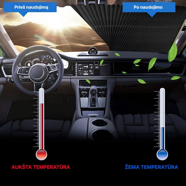 Mūsų produktas efektyviai blokuoja kenksmingus UV spindulius, apsaugodamas jūsų automobilį nuo perkaitimo ir degradacijos. Tai padeda išlaikyti vėsesnį interjerą ir žymiai sumažina žalą jūsų automobilio sėdynėms ir prietaisų skydeliui.