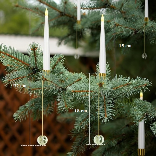 Šios Kalėdų eglutės žvakės turi auksinius kabliukus ir skaidraus krištolo rutulio dizainą, natūraliai derantį su eglės šakomis, suteikdamos elegantišką, šventišką išvaizdą.