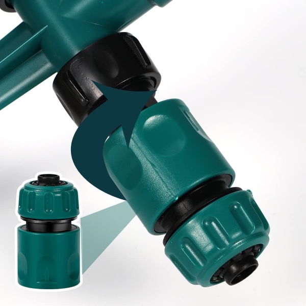 Naudodami dvigubus ROTOSPRITZ vandens žarnos antgalius, galite be vargo prijungti kelis purkštuvus, kad padengtumėte didesnius plotus. Tiesiog prijunkite du ar daugiau ROTOSPRITZ purkštuvų kartu, kad drėkinimas būtų dvipusis, ir užtikrinkite, kad visas jūsų sodas gautų idealų vandens kiekį. Dėl šio universalaus sujungimo šis laistytuvas idealiai tinka plačioms vejoms ir išsiplėtusioms sodo lysvėms.