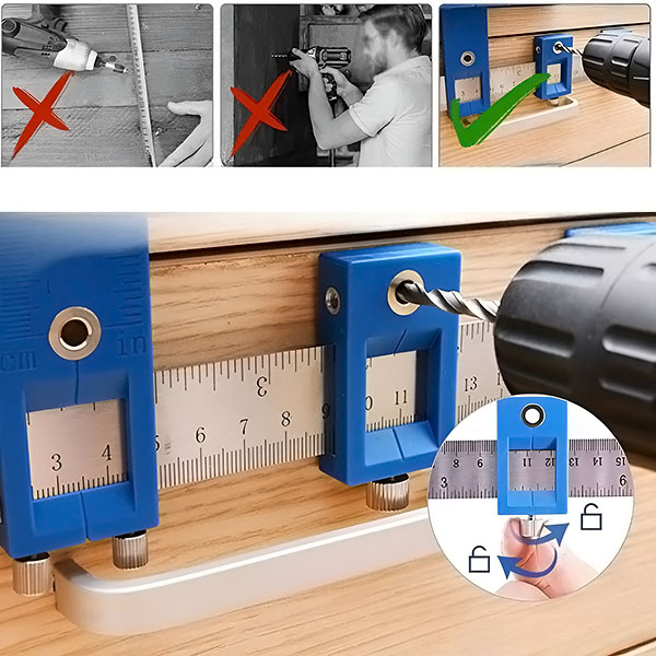 🛠️ Puikus gręžimas, kiekvieną kartą! Pasidaryk pats lengviau su mūsų reguliuojamu centravimo šablonu. Tiksliai gręžkite skyles mediniuose balduose ir kitur, greitai ir tiksliai išlyginkite bet kokį projektą.