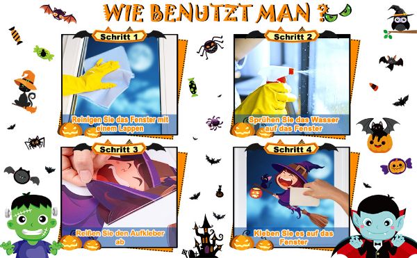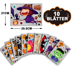 - Dydis: Helovino langų lipdukai, kuriuos sudaro 10 lipdukų, kiekvienas 21 x 29,5 cm