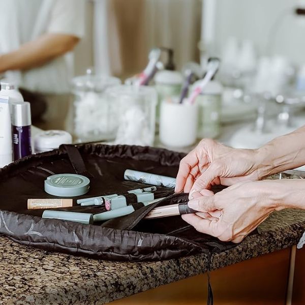 Mėgaukitės nesudėtingu saugojimu su GLAMSY. Paprasčiausiai patraukite virvelę, kad maišelis susilankstytų iki kompaktiško, kelionėms patogaus dydžio. Jis puikiai tinka jūsų kuprinei ar bagažui, o jūsų grožio priemonės bus tvarkingos ir apsaugotos nuo pažeidimų. Dėl milžiniškos talpos ir patogumo šis stebuklingas maišelis yra privalomas aksesuaras, kuriame galėsite paslėpti visus savo odos priežiūros reikmenis.