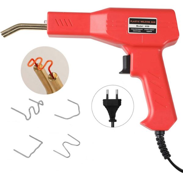 Komplekte: 1x suvirinimo prietaisas, 1x replės, 1x peilis, 200 skirtingų segtukų