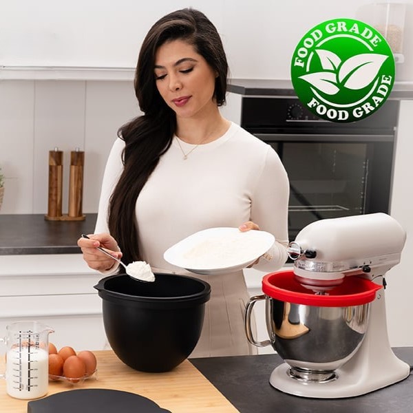 Lankstus silikoninis įdėklas tvirtai priglunda dubens viduje, užtikrindamas tolygų ir stabilų maišymą naudojimo metu.