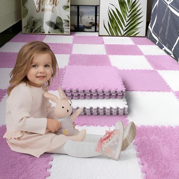 Medžiaga: storas, pliušinis audinys Spalvos: rožinė, mėlyna, balta arba pilka Vienos dėlionės dydis: 30 x 30 cm Dengiamoji geba: 0,9 m² Naudojimas: Puikiai tinka svetainėms, miegamiesiems, kūdikių kambariams ir kt. Priežiūros instrukcijos: Lengva valyti rankomis
