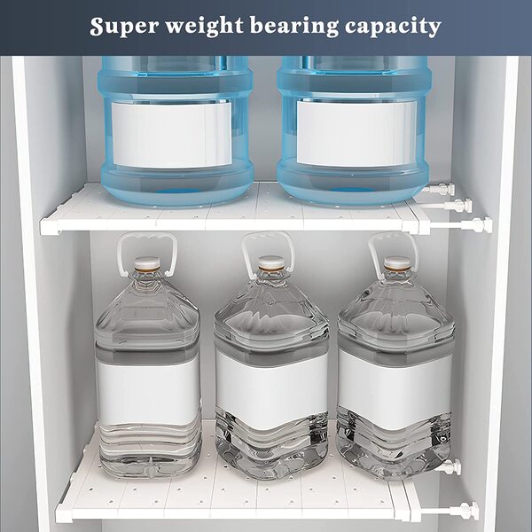 • Pakuotę sudaro: Komplekte: 1x išplečiama spintos įtempimo lentyna, skirta drabužinei, virtuvei, vonios kambariui.