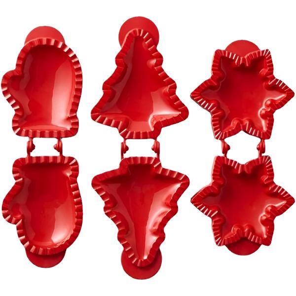 Suteikite savo pyragams šventiško unikalumo naudodami tris įdomias formas – snaigės, pirštinės ir Kalėdų eglutės.