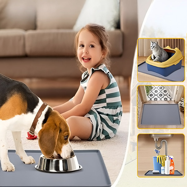 Pagamintas iš patvaraus, netoksiško silikono, šis kilimėlis yra 100 % saugus jūsų augintiniams. Jo vandeniui atspari konstrukcija apsaugo jūsų grindis nuo išsiliejimo, įbrėžimų ir dėmių, todėl galėsite būti ramūs kiekvieną valgymo valandėlę.