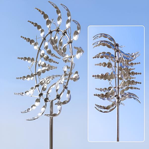 🌬️ Dviejų menčių konstrukcija sukuria hipnotizuojantį reginį ir atlaiko vėjuotas dienas, puikiai tinka nesudėtingam lauko dekorui.