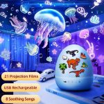 Nuimkite gaubtą ir pamatysite aukštos raiškos projektorių, kuris rodo įspūdingus vaizdus – dinozaurus, žvaigždes ir undines, sukuriant magišką atmosferą.