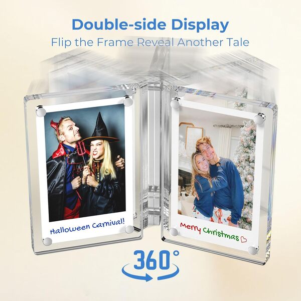 Dėl didelio akrilo skaidrumo nuotraukas galima peržiūrėti iš abiejų pusių, todėl brangios akimirkos išliks matomos kiekvieną kartą, kai praeisite pro šalį.