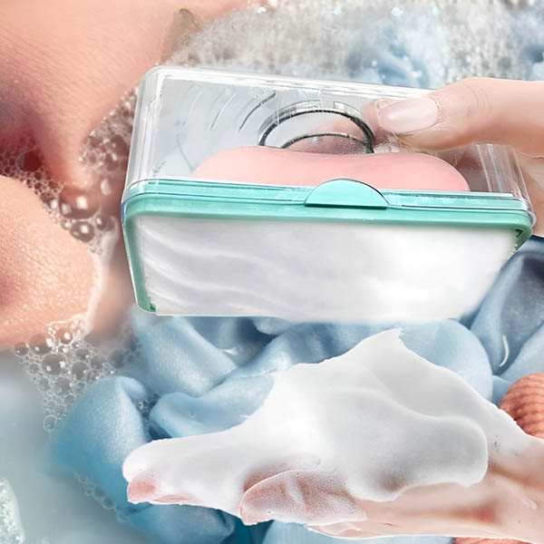 Turintis dantytą volelį, jis ne tik padeda skalbti drabužius, bet ir švelniai šveičia ir masažuoja, kai naudojamas ant odos. Tiesiog įdėkite švelnaus muilo į talpyklą ir mėgaukitės papildomu masažo ir šveitimo efektu. Tai padeda pašalinti negyvas odos ląsteles ir pagerinti kraujotaką, suteikdamas daugiau universalumo.