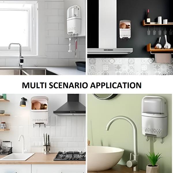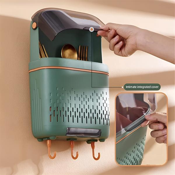Palaikykite virtuvės tvarką su mūsų pakabinamu indų laikikliu, veiksmingai atlaisvinančiu brangią vietą ant stalviršio ir stalčiuose.