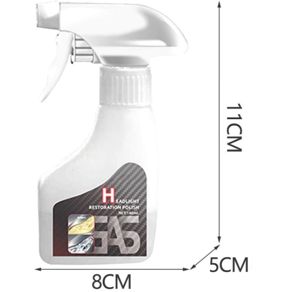 30 sekundžių purškalas atkuria krištolo skaidrumo priekinius žibintus be įrankių ar išardymo.