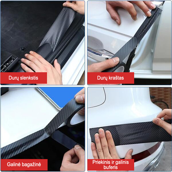 🔹 Išorės apsauga – uždėkite ant durų, veidrodžių ir bagažinės kraštų, kad išvengtumėte įbrėžimų nuo raktų, žiedų ar atsitiktinių smūgių.