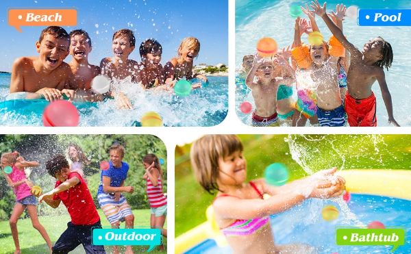 Mūsų daugkartinio naudojimo vandens balionai suteiks papildomos azarto dozės kiekvienai vasaros dienai: nuo jaudinančių vandens balionų kovų iki linksmų estafečių ir gaivių mūšių baseine. Stebėkite, kaip vaikai ir suaugusieji kikena iš džiaugsmo ir nekantriai laukia kito vandens linksmybių pliūpsnio! 💧🎈