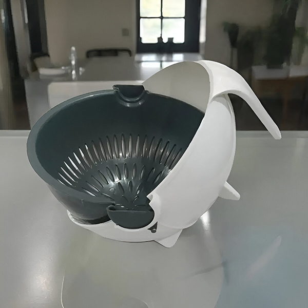 Automatinis besisukantis krepšys greitai ir efektyviai nuleidžia vandenį, todėl jūsų darbo vieta išliks sausa ir švari. Ši funkcija ypač patogi, kai vienu metu reikia apdoroti daug daržovių ar vaisių.