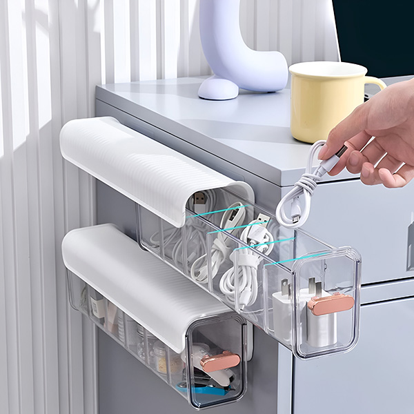 Nusibodo pamesti rašikliai, įkrovikliai ar biuro reikmenys? ORGABIN lipnų laikiklį lengva priklijuoti po rašomaisiais stalais, kad efektyviai išnaudotumėte erdvę. Kompaktiškas dydis užtikrina, kad visi jūsų smulkūs reikmenys išliks tvarkingi ir lengvai randami.