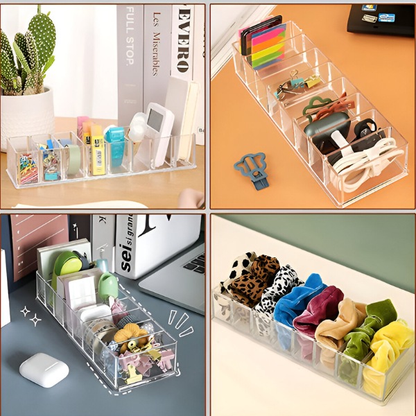 ORGABIN nuimami skirtukai leidžia sukurti didesnius ar mažesnius skyrius, priklausomai nuo jūsų poreikių. Nesvarbu, ar tai būtų didelių gabaritų priedai, ar maži kabeliai, skaidri, patvari PET medžiaga užtikrina, kad daiktai bus laikomi tvarkingai ir visada bus matomi.