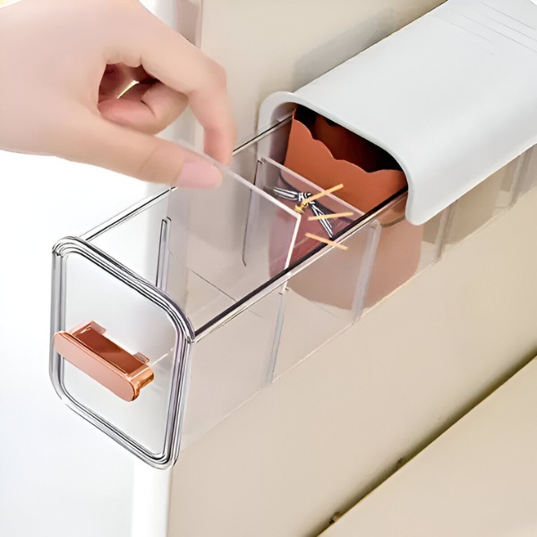 Laikykite prieskonius, indus ar smulkius įrankius šiuose permatomuose daiktų organizatoriuose su saugiais dangteliais, kurie apsaugo virtuvės reikmenis nuo dulkių. Sumontuokite juos spintelėse arba ant sienų, kad būtų patogiai pasiekiami, o patiekalų ruošimas taptų greitesnis ir efektyvesnis.