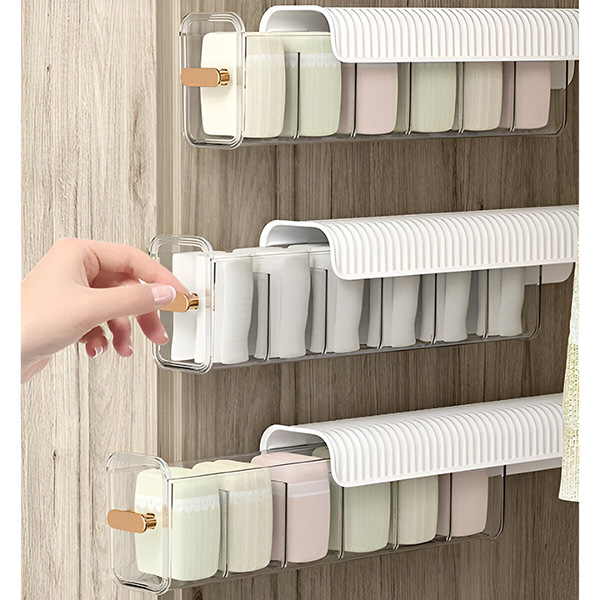 Atsisveikinkite su netvarkingomis spintomis su ORGABIN laikymo organizatoriais. Skaidrus, permatomas dizainas padeda viską matyti iš pirmo žvilgsnio, o liemenėlės, kojinės ir kaklaraiščiai laikomi tvarkingai. Dėl stalčių primenančios konstrukcijos daiktus pasieksite greitai ir lengvai.