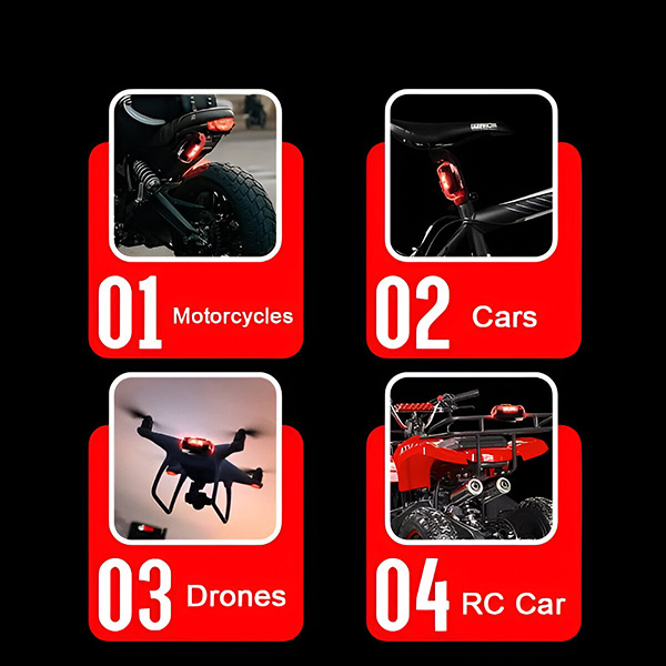 Daugeliui žibintų reikalingi laikikliai, varžtai arba nuolatinės modifikacijos, kurios netinka skirtingoms transporto priemonėms. STROBIES tvirtinami per kelias sekundes naudojant lipnius padelius arba guminius žiedus – jokių įrankių, jokio gręžimo, jokios žalos jūsų transporto priemonei. Perkelkite jį nuo automobilio ant motociklo, dviračio, drono, šalmo ar kuprinės, kai tik prireiks.