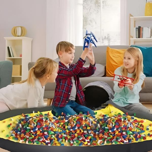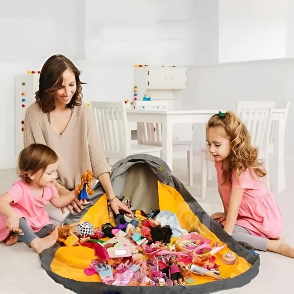 🎮 Integruotas kilimėlis padeda išskleisti žaislus ir greitai juos sutvarkyti.