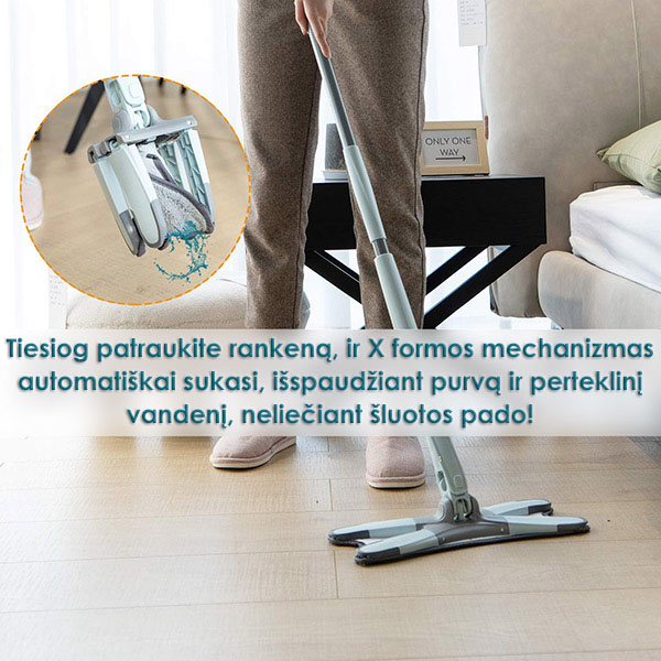 Pamirškite permirkusias šluotas ir nešvarias rankas! Mūsų pažangi savarankiškai išsukanti sistema imituoja rankų spaudimą, pašalindama 2 kartus daugiau vandens nei tradicinės šluotos, kad valymas būtų greitesnis ir lengvesnis!
