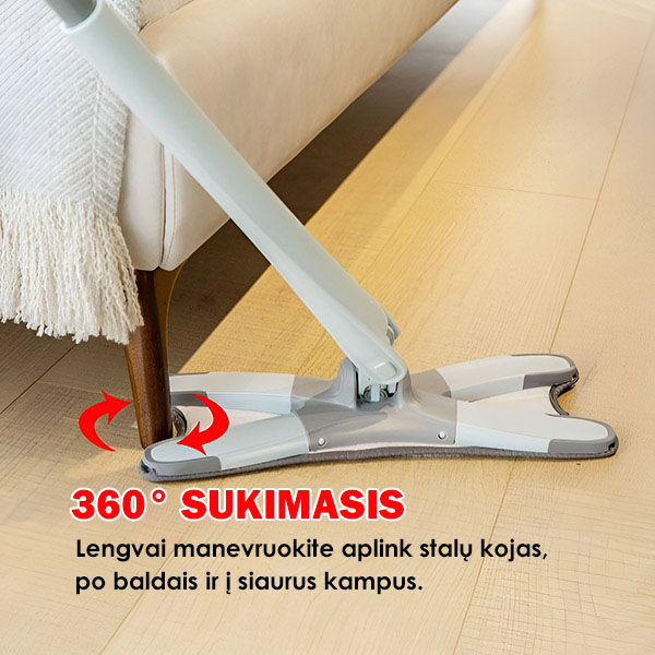Grindų plovimas anksčiau buvo netvarkingas ir užimdavo daug laiko—dabar nebe. Ši šluota sukurta tam, kad sutrumpintų valymo laiką perpus! Nuvalykite dulkes, purvą ir išsiliejimus vienu brūkštelėjimu.